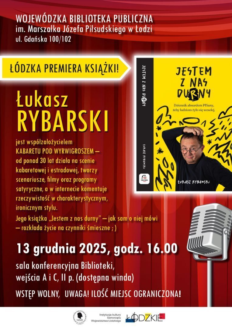 Wojewódzka Biblioteka Publiczna im. Marszałka Józefa Piłsudskiego w Łodzi zaprasza na łódzką premierę książki Łukasza Rybarskiego, współzałożyciela Kabaretu pod Wyrwigroszem, znanego satyryka i twórcy internetowych komentarzy w charakterystycznym, ironicznym stylu.