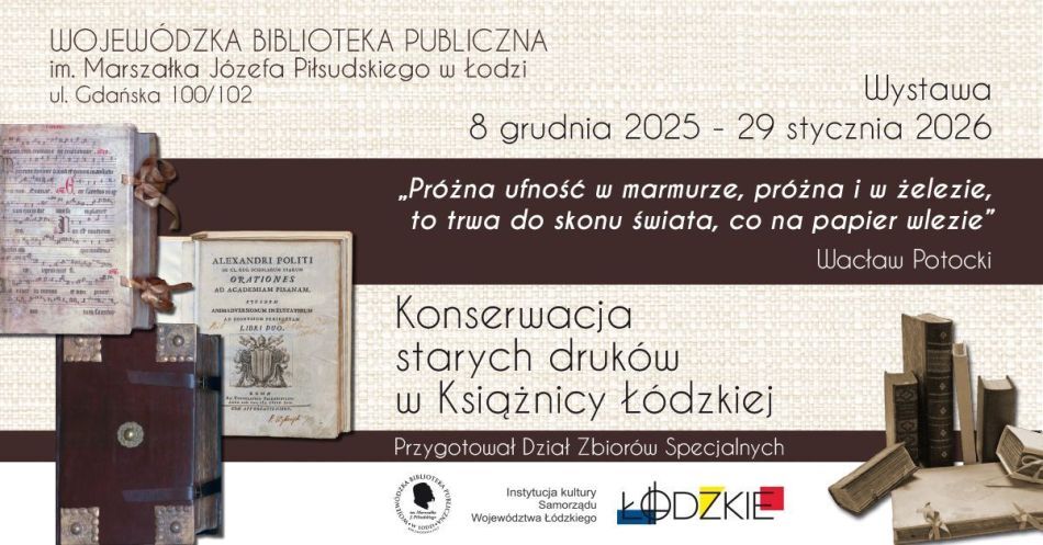 [1/5] Wystawa: Próżna ufność w marmurze, próżna i w żelezie, to trwa do skonu świata, co na papier wlezie (Wacław Potocki) - konserwacja starych druków