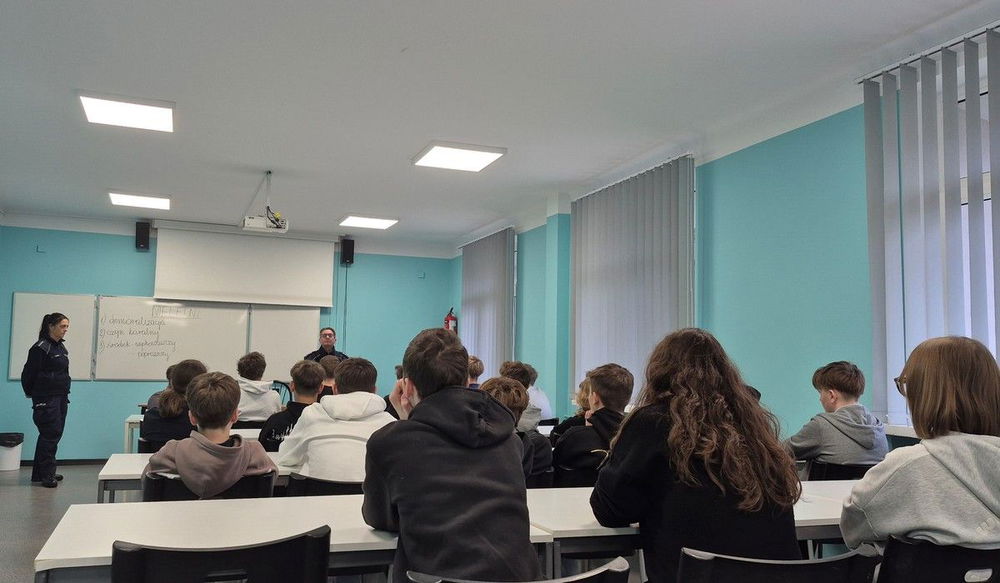 Funkcjonariusze I Komisariatu Policji w Łodzi odwiedzili Technikum nr 3, aby porozmawiać z pedagogami i młodzieżą na ważne tematy związane z bezpieczeństwem. Mundurowi z Ogniwa do spraw Nieletnich i Patologii przypomnieli o odpowiedzialności prawnej nieletnich za czyny karalne i przejawy demoralizacji oraz omówili konsekwencje takich zachowań.