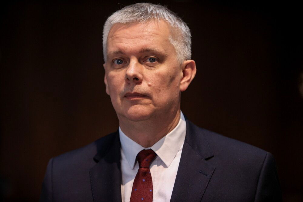 Katowice, 17.07.2025. Minister spraw wewnętrznych i administracji, koordynator służb specjalnych Tomasz Siemoniak podczas briefingu prasowego w siedzibie Narodowej Orkiestry Symfonicznej Polskiego Radia w Katowicach, 17 bm. Wcześniej odbyły się uroczystości z okazji 25. rocznicy utworzenia Centralnego Biura Śledczego Policji. (mr) PAP/Jarek Praszkiewicz