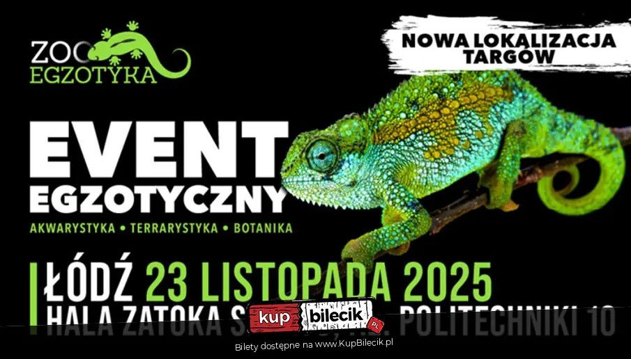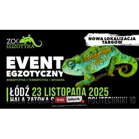 To event ze zwierzętami i roślinami egzotycznymi, który odbędzie się 23 listopada 2025r. - HALA ZATOKA SPORTU, Al. Politechniki 10 w Łodzi. Tylko tutaj w jednym miejscu będziecie mogli zobaczyć węże, jaszczurki, żółwie, żaby, ślimaki, owady, pająki, ryby i rośliny z całego świata oraz zakupić wszelkie rzeczy, niezbędne do rozpoczęcia przygody ze zwierzętami egzotycznymi! Serdecznie zapraszamy na nasze wydarzenie oraz stronę internetową, gdzie znajdują się wszystkie niezbędne informacje www.zooegzotyka.pl