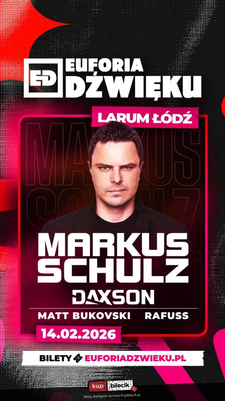 | Marcus Schulz | Daxon | Matt Bukovski | Rafussdodano 2025-11-17 11:15:14 Euforia Dźwięku w Łodzi! 14 lutego 2026 spotykamy się na scenie! Line up: Marcus Schulz Daxon Matt Bukovski Rafuss Impreza dla osób pełnoletnich. Bilety do nabycia na: KupBilecik.plEuforia Dźwięku artyści: Różni artyściZapraszamy Was na imprezę ze stajni Euforia Dźwięku! Usłyszycie doskonale znane Wam nazwiska sceny klubowej! Miejsce, ludzie i niezapomniany klimat! Euforia Dźwięku - musisz tam być! Bilety do nabycia na: KupBilecik.pl |