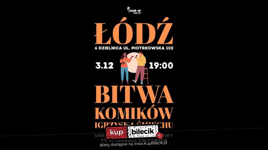 | To Ty wybierasz najśmieszniejszego komika!dodano 2025-11-18 19:13:53 Legendarne show komediowe Bitwa Komików po raz pierwszy w Łodzi! Już 3.12 o 19:00 w 6 dzielnicy. Bitwa Komików to format fascynujący, który przypadł do gustu publiczności jeszcze parę lat temu, dzięki czemu wielokrotnie wypełnialiśmy sceny komediowe aż po brzegi! Bitwy Komików odbywały się w takich miejscowościach jak Siedlce, Kraków, Legionowo, Lublin, Poznań, Gdańsk oraz Białystok! Wystąpią sami świetni profesjonalni doświadczeni komicy - partnerzy Stand-up No Limits oraz uczestników show Kanału Komediowego. Komicy będą odkrywani stopniowo, ale obiecujemy, że będą to istne tuzy komedii! Wydarzenie poprowadzi: Sergiej Nowikow - międzynarodowy komik, obywatel Polski, od 2021 na scenie, support kilku komików, laureat kilku konkursów, twórca kilku show, najlepszy komik z Siedlec (i/bo jedyny), wzrost 185 cm, rozmiar buta 43. Bilety do nabycia na: KupBilecik.plStand-up Bitwa komików: Wielki Powrót artyści: Komicy i stand-uperzyBitwa Komików to format fascynujący, który przypadł do gustu siedleckiej publiczności jeszcze parę lat temu, dzięki czemu pięciokrotnie wypełnialiśmy kultowe "pantofle" aż po brzegi! Bitwy Komików odbywały się także w takich miejscowościach jak Kraków, Lublin, Poznań oraz Białystok! Bilety do nabycia na: KupBilecik.pl |