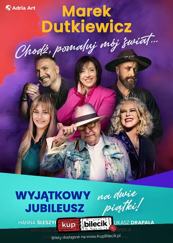 | Chodź, pomaluj mój świat... Wyjątkowy jubileusz na dwie piątki!dodano 2026-01-12 12:25:11 Chodź, pomaluj mój świat - wyjątkowy jubileusz Marka Dutkiewicza, autora superprzebojów. Niezwykły koncert, który będzie podróżą przez świat najpiękniejszych polskich piosenek! Z okazji 55-lecia utworu "Chodź, pomaluj mój świat" świętujemy twórczość Marka Dutkiewicza - jednego z najbardziej kultowych autorów tekstów w historii muzyki rozrywkowej. Usłyszycie na żywo takie przeboje jak: "Jolka, Jolka", "Dmuchawce, latawce, wiatr", "Słodkiego, miłego życia", "Aleja gwiazd", "Szklana pogoda", "Windą do nieba" i wiele, wiele innych, które na zawsze zapisały się w sercach Polaków. Marek Dutkiewicz nie tylko przypomni swoje największe hity, ale również podzieli się kulisami ich powstawania, anegdotami i osobistymi wspomnieniami z ponad pięciu dekad pracy twórczej. To wieczór pełen wzruszeń, wspólnego śpiewania i sentymentalnej podróży do czasów, które na nowo ożyją w dźwiękach niezapomnianych melodii. W koncercie wystąpią: Łukasz Drapała, Mateusz Ziółko, Joanna Dark, Hanna Śleszyńska i Zofia Nowakowska. Artystom będzie akompaniował zespół muzyczny pod kierownictwem Pawła Pańty. Nie przegap tego wyjątkowego wydarzenia - wspólnie pomalujmy świat barwami wspomnień i muzyki! Bilety do nabycia na: KupBilecik.plMarek Dutkiewicz artyści: Łukasz Drapała, Mateusz Ziółko, Joanna Dark, Hanna Śleszyńska, Zofia NowakowskaChodź, pomaluj mój świat - wyjątkowy jubileusz Marka Dutkiewicza, autora superprzebojów. Niezwykły koncert, który będzie podróżą przez świat najpiękniejszych polskich piosenek! Z okazji 55-lecia utworu "Chodź, pomaluj mój świat" świętujemy twórczość Marka Dutkiewicza - jednego z najbardziej kultowych autorów tekstów w historii muzyki rozrywkowej. Usłyszycie na żywo takie przeboje jak: "Jolka, Jolka", "Dmuchawce, latawce, wiatr", "Słodkiego, miłego życia", "Aleja gwiazd", "Szklana pogoda", "Windą do nieba" i wiele, wiele innych, które na zawsze zapisały się w sercach Polaków. Marek Dutkiewicz nie tylko przypomni swoje największe hity, ale również podzieli się kulisami ich powstawania, anegdotami i osobistymi wspomnieniami z ponad pięciu dekad pracy twórczej. To wieczór pełen wzruszeń, wspólnego śpiewania i sentymentalnej podróży do czasów, które na nowo ożyją w dźwiękach niezapomnianych melodii. Bilety do nabycia na: KupBilecik.pl |