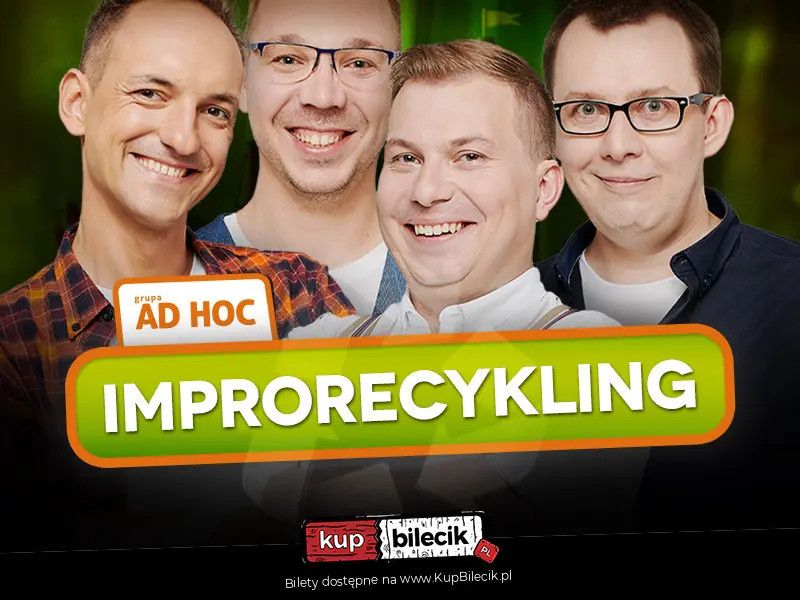 bilety: W PEŁNI IMPROWIZOWANY WIECZÓR KOMEDIOWY TWORZONY NA PODSTAWIE WASZYCH SUGESTII Improrecykling to strumień świadomości i wartka rzeka skojarzeń do której inspiracją będą przyniesione przez Was przedmioty. Nie zawahajcie się przeszukać wszystkie domowe szuflady, kosze, szafki i pudła, aby je znaleźć. Wygrzebujcie śmiało - stare pamiętniki, zdjęcia, zabawki i inne najrozmaitsze graty. Przyniesione przez Was skarby ożyją i uruchomią lawinę improwizowanych opowieści, której dacie się porwać razem z nami. Wystąpią członkowie Grupy AD HOC: - Jan Malinowski Czas trwania: 70 minut Pełna improwizacja, otwartość na absurd, zabawa formą i dużo śmiechu! Grupa AD HOC artyści: Aneta Stokes, Alan Pakosz, Jan Malinowski, Michał "Jeffrey" Ociepa, Michał PróchniewiczGrupa AD HOC - powstała w październiku 2008 roku, jako jedna z pierwszych w Polsce grup zajmujących się improwizacją teatralno-komediową. Wszystkie spektakle są premierowe, tworzone są na scenie na żywo, bez scenariusza, w oparciu o sugestie publiczności i nieograniczoną wyobraźnię improwizatorów. Członkowie grupy swoją wiedzę i doświadczenie zdobywali na warsztatach z instruktorami z całego świata. AD HOC to kilkaset godzin występów i przeprowadzonych w całej Polsce warsztatów improwizacji. Grupa często gości na festiwalach teatralnych, kabaretowych i improwizacyjnych. Pomysłodawcy i organizatorzy największego w Polsce festiwalu improwizacji komediowej "ImproFest" Bilety do nabycia na: KupBilecik.pl |
